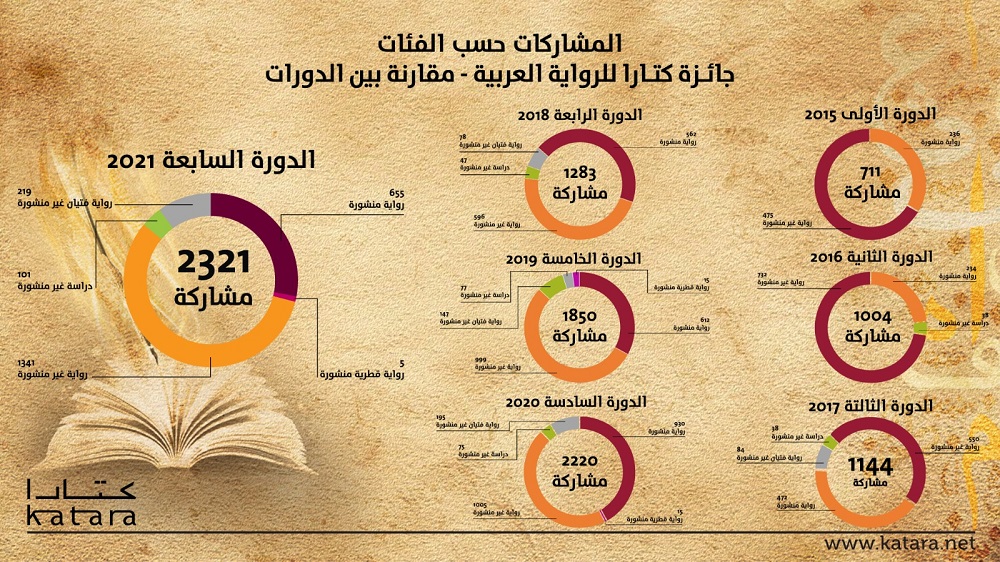 وقد تميزت الدورة السابعة لجائزة كتارا للرواية العربية بتسجيل أكبر عدد مشاركات منذ إطلاقها في 2014، حيث وصل عدد المشاركين الى 2321 مشاركة، بنسبة زيادة 4.5 في المئة عن الدورة السابقة، والتي وصل عدد المشاركات فيها إلى 2220 مشاركة، كما تميزت هذه الدورة بزيادة عدد المشاركات الخليجية والتي وصلت الى 146 مشاركة.