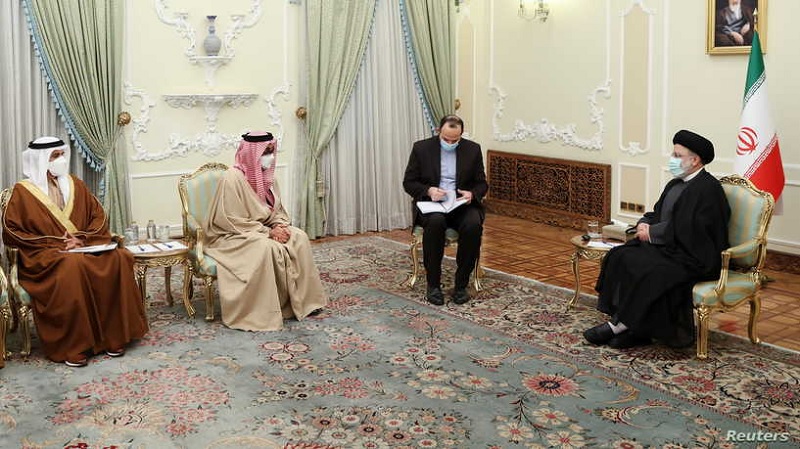خلال الزيارة التقى بالرئيس الإيراني، إبراهيم رئيسي، كما التقى أمين مجلس الأمن القومي الإيراني، علي شمخاني، حيث بحث الطرفان تعزيز العلاقات الثنائية والتشاور بشأن آخر المستجدات في المنطقة.