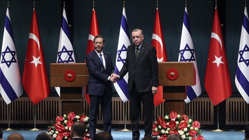 الرئيس التركي أردوغان ورئيس الكيان الإسرائيلي إسحق هرتزوغ في اسطنبول