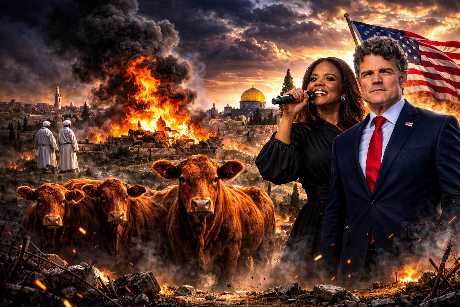 وفي هذا السياق، أثارت أوينز قضية “البقرات الحمراء”، التي تُستخدم في الطقوس اليهودية القديمة للتطهير الديني، مشيرة إلى تقارير تتحدث عن محاولات حديثة لإعادة إحياء هذه الطقوس، بما في ذلك تجارب لإنتاج أبقار مطابقة للمواصفات الدينية عبر تقنيات الهندسة الوراثية.